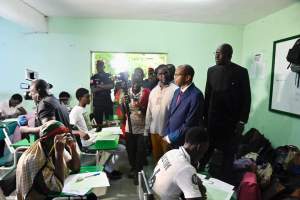En compagnie du directeur de l’office du baccalauréat et de responsables du ministère de l’éducation nationale, Pr Moussa Baldé a visité les centres d’examen du lycée Blaise Diagne et de l’université Amadou Hampathe Ba.