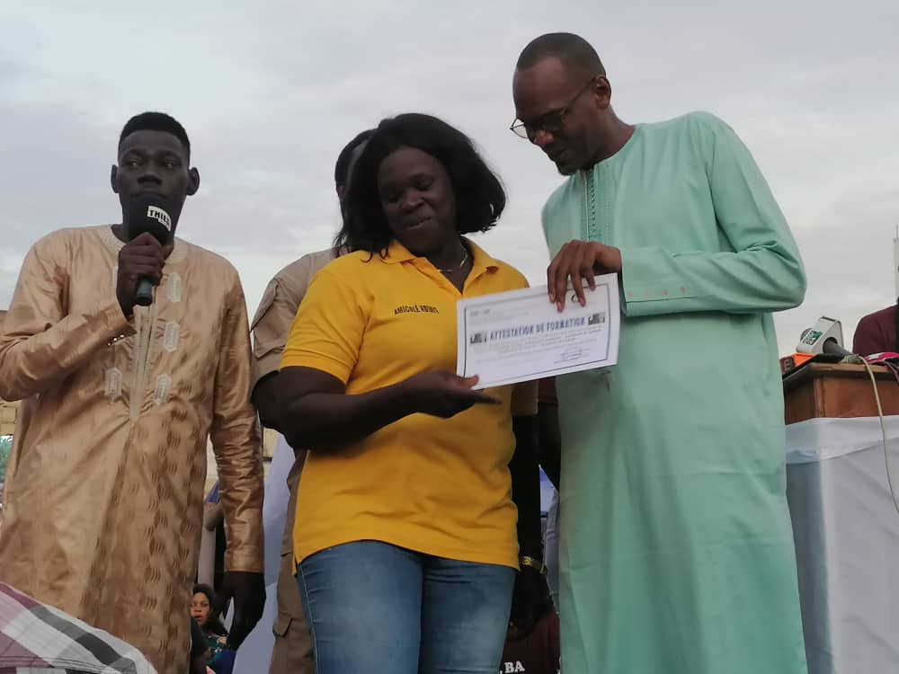 L’éducation est une des priorités dans le programme politique de l’aperiste et candidat pour la mairie de la zone. C’est pourquoi il a initié un programme scolaire intitulé « du primaire à l’université ». Ce programme mis sur pied depuis 5 ans a pour but d’accompagner les élèves à la base jusqu’à l’université. La présidente du regroupement des handicapés madame Mariama Sarr a rappelé à l’assistance le soutien indéfectible de leur leader au côté de la population particulièrement aux personnes vivant avec un handicap. « Monsieur Habib Niang ici présent est la personne qui nous a sortie de la mandicité. Grâce a lui nous les handicapés nous avons un métier et nous n’avons plus besoin d’aller mandier. C’est pourquoi mes chères je vous exhorte à redoubler d’efforts et de bien garder vos cartes nationales d’identités. Car la seule chose que nous pouvons faire c’est d’élire notre président Habib Niang à la tête de la mairie pour l’émergence de notre commune ». À la suite de Mme Sarr la présidente de la commission sociale Mme Coumba Coulibaly elle aussi a expliqué l’importance de ce remise qui arrive à son heure comme à chaque année. « Le président Habib Niang agit toujours pour la communauté. En temps que présidente de la commission sociale je peux témoigner des sacrifices que notre leader fait pour soulager les populations. Tout cela passe par une politique d’accompagnement des couches sociales les plus vulnérables « .