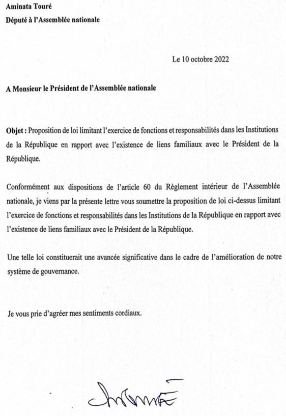 L’ancienne Première Ministre vient de soumettre une proposition de loi limitant l’exercice de fonctions et responsabilités dans les Institutions de la République en rapport avec l’existence de liens familiaux avec le Président de la République.