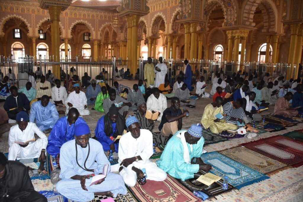 Mosquée Massalikoul Jinaan à Dakar : Comme recommandé par le Khalife général des mourides Serigne Mountakha Mbacké, les disciples ont entamé dimanche les prières et récitals de Coran pour un bon hivernage et des élections législatives apaisées dans le pays.