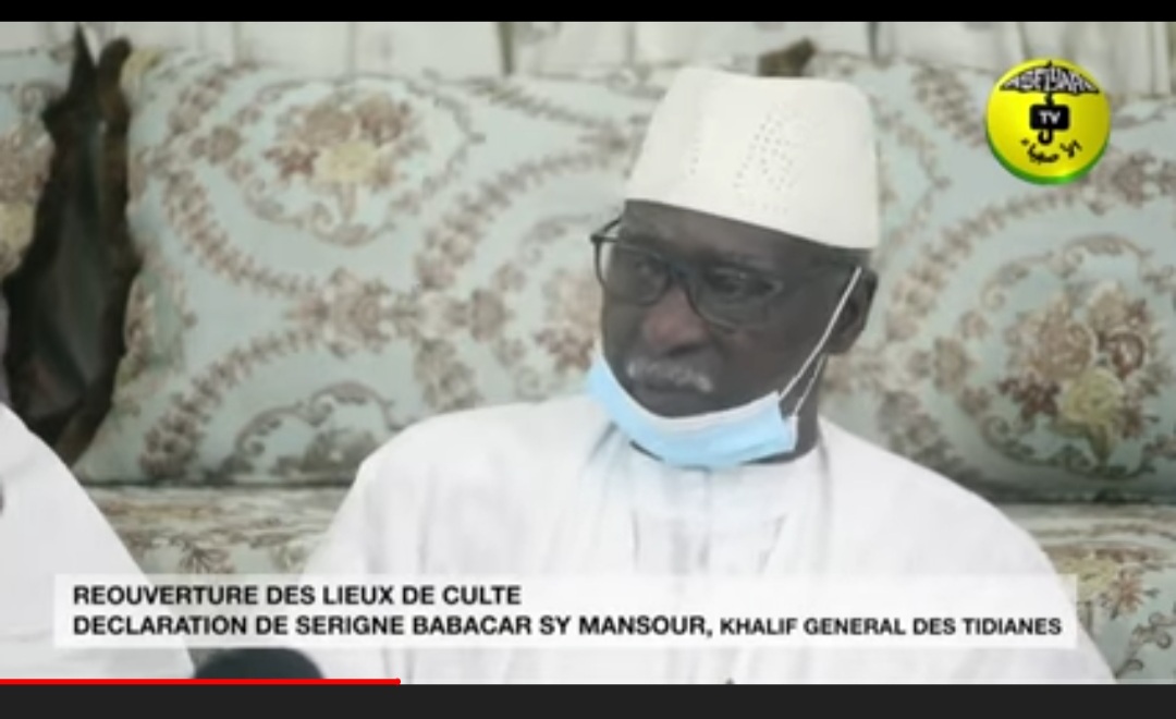 Le Khalife général des Tidianes a ordonné ce Mardi l’ouverture des mosquées dans la ville Sainte et a recommandé aux fidèles de prier les Vendredi à la Mosquée Serigne Babacar Sy, vu l’indisponibilité de la grande mosquée de Tivaouane en chantier.