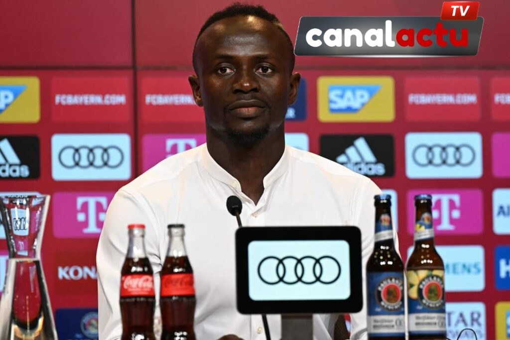 Sadio Mané en conférence de presse au FC Bayern München.