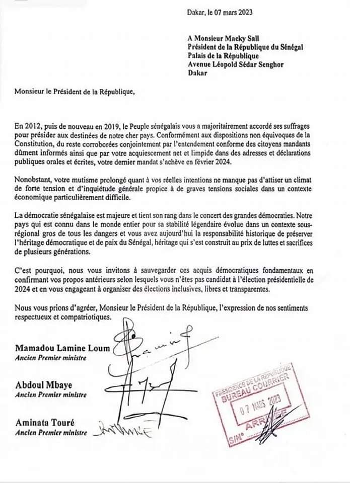 Trois anciens Premiers ministres du Sénégal, Abdoul Mbaye, Aminata Touré et Mamadou Lamine Loum invitent le président de la République, Macky SALL, à préserver l’héritage démocratique et de paix du Sénégal.