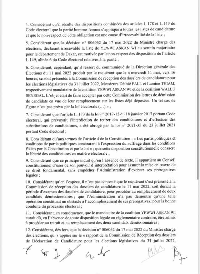 Le Conseil constitutionnel a rejeté la décision de la DGE contre la liste de Yewwi Askan wi. Le juge chargé de se pencher sur ces affaires politiques a donné sa décision concernant la demande visant l’annulation des décisions de rejet de la liste départementale de Yewwi Askan Wi à Dakar, déposée par la Direction générale des élections. Les cinq sages ont rejeté la requête parce que, disent-ils, les arguments évoqués ne sont pas valables.